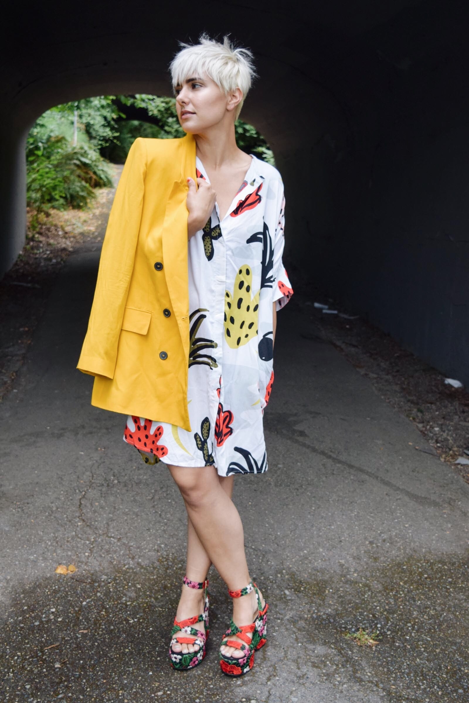 This Monki dress has been one of my favorite go-to dress/beach cover up/where anywhere on a hot day options but that billowy vibe can be a little too casual in some settings. To help this loose shaped dress have a bit more structure and polish I simply added a blazer and voila, the look is much more pulled together. Whether it is draped over your shoulders or worn with the sleeves pushed up a great blazer is going to be one of the most versatile items in your closet this fall so make sure you pick yours wisely because I promise you will be wearing it a ton.