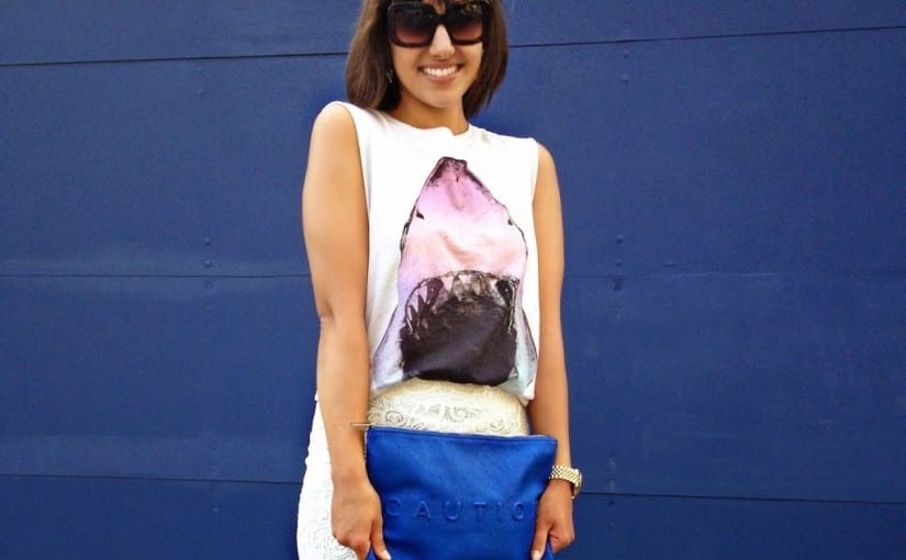 Zara tank VERY cool and similar here, Crochet skirt here, CAUTION clutch last seen here, Gladiator Sandals Zara, Earrings/Sunglasses Forever21 SHARK WEEK!!!!!!!!!!!!!!!!!!!!!!!!!!!!!!! Rawr! Happy Shark Week! Having just finished the quintisential kick-start movie to Shark Week (Sharknado of course) I felt that not only was my JAWS shirt completely appropriate for this post, but my CAUTIONary clutch was as well. Sharks, as we know, aren’t to be messed with but they sure are wearable on clothing! You can read more about the Givenchy influence of this Zara tank here and honestly I wish more brands/fashion houses/retailers would embrace this ever growing trend of Shark-fandom. I was however THRILLED to see…